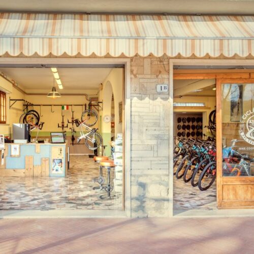 The Ciclofficine del teatro Povero are located at the entrance to the spa village of Bagno Vignoni in the Val d’Orcia Park, a Unesco World Heritage Site. Here you can rent your electric and muscle bikes, and you will find an information and refreshment point, equipped with an e-bike charger to enjoy a nice ride in the hills of Val d’Orcia! Rent your bikes and immerse yourself in the beautiful unspoiled landscapes of the Val d’Orcia. You can choose between our tours with local guides, or leave alone to explore these beautiful valleys, away from the most crowded destinations.