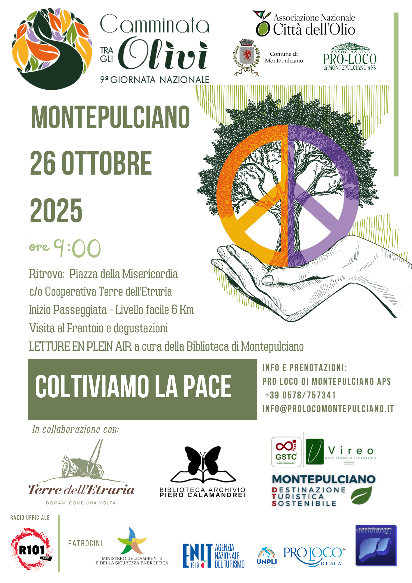 Torna a Montepulciano la 9ª Giornata Nazionale della “Camminata tra gli Olivi”, un’occasione unica per immergersi nella bellezza del nostro paesaggio e scoprire i segreti dell’olio extravergine d’oliva, vero oro verde della nostra terra.