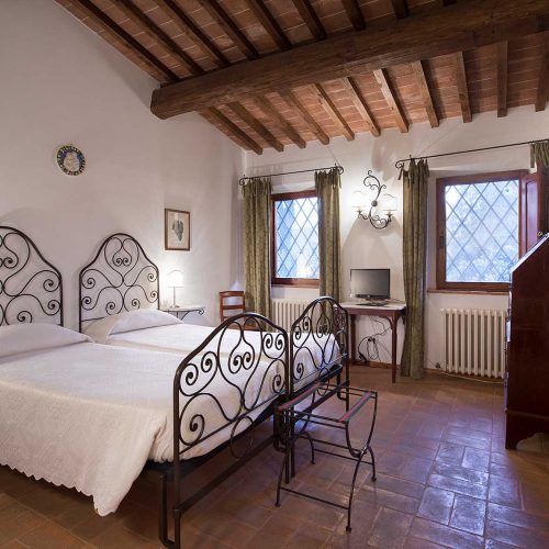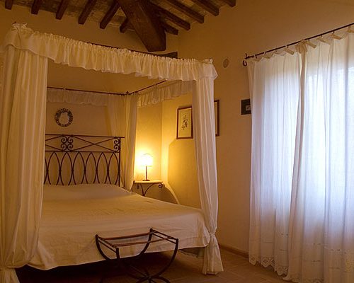 Tutti gli appartamenti e le camere sono stati arredati con molta cura, hanno mobili toscani dell’800, letti a baldacchino in ferro battuto o in tessuto, pavimenti in cotto e grandi finestre dalle quali si gode di una vista davvero splendida.