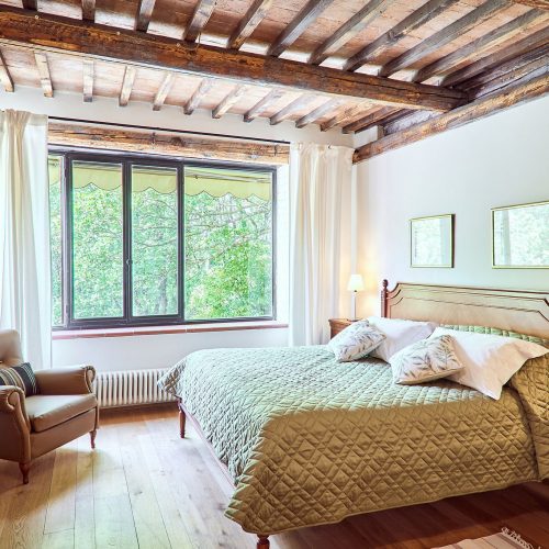 La strada che da Montepulciano conduce a Chiusi è un susseguirsi di boschi e di distese verdi, un percorso di vedute sulla rinomata campagna toscana, dove il silenzio e il colore delle querce, dei cipressi, degli olivi e dei vigneti regnano incontrastati e si fondono con le pietre dei vecchi casali. Lungo la via si incontra l’agriturismo Podere Lamberto, un’antica casa colonica ristrutturata con cura ed aperta ai viaggiatori. Podere Lamberto è un agriturismo ispirato ai country Hotel: poche stanze e un’ospitalità familiare attenta ai più piccoli dettagli. Nella casa padronale vivono i proprietari, mentre nella foresteria (ex granaio) vi sono 4 appartamenti indipendenti capaci di soddisfare diverse esigenze dalla camera all’appartamento per 4 persone. L’arredo accosta pezzi antichi, letti in ferro battuto, e tappeti d’epoca. Al piano terreno, vicino alla cantina e alle preziose botti di rovere, c’è una grande cucina con il camino per le grigliate, un grande tavolo e comode poltrone per un piacevole conversare. E’ anche possibile gustare la cucina tipica della zona a base di prodotti dell’azienda: dell’orto, del frutteto, il vino Nobile e l’olio d’oliva, il miele il formaggio pecorino e la pasta fatta a mano. Un sentiero in mezzo agli alberi conduce ad un laghetto.